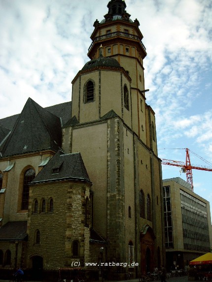 An dieser Stelle - genauer in der Leipziger Nikolaikirche hat die Wende durch die, über die Landesgrenzen, pardon, über die Grenzanlagen hinaus, bekannten Montagsdemonstrationen ihren Lauf genommen. Im Rahmen der 40-Jahr-Feierlichkeiten anlässlich des Bestehens der DDR lieferten sich Michail Gorbatschow und Erich Honecker ein Sprücheduell erster Güte.